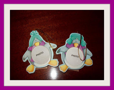 4. TWO tiny, wooden, painted penguin picture frames. You can hang these on the tree or set them on a mantle or bookcase.