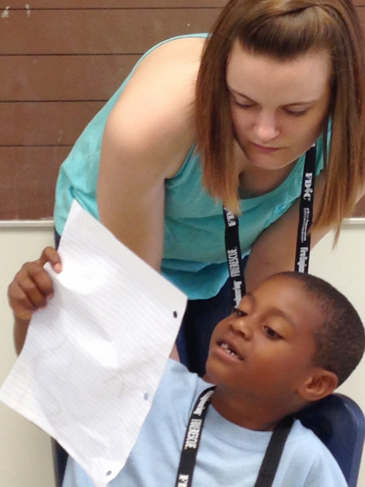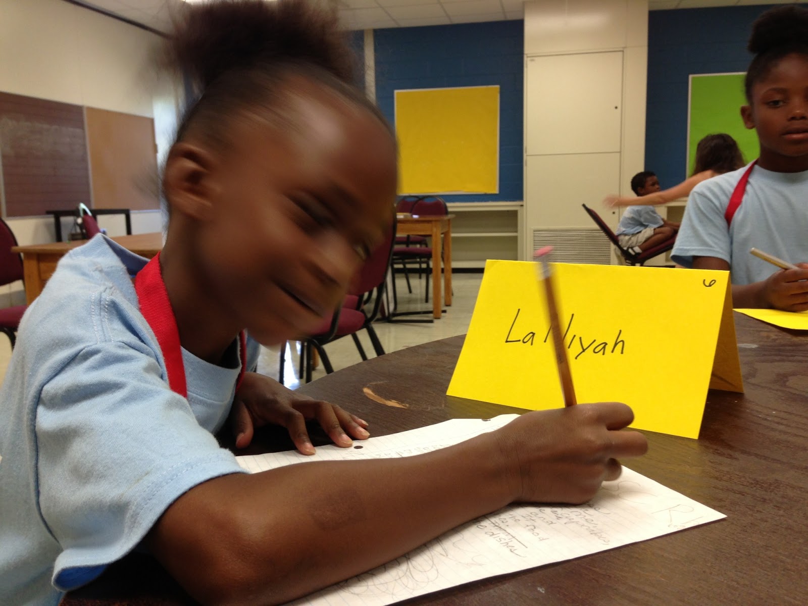 Every now and then, there’s a perfect day. Yesterday morning, I worked with the little ones at our summer writing program at St. Florian Center's Youth Leadership Development Camp, drawing stories out of them, helping them put the words down on the page. One of the little girls, LaNiyah (7), stroked my inner arm while I was writing.