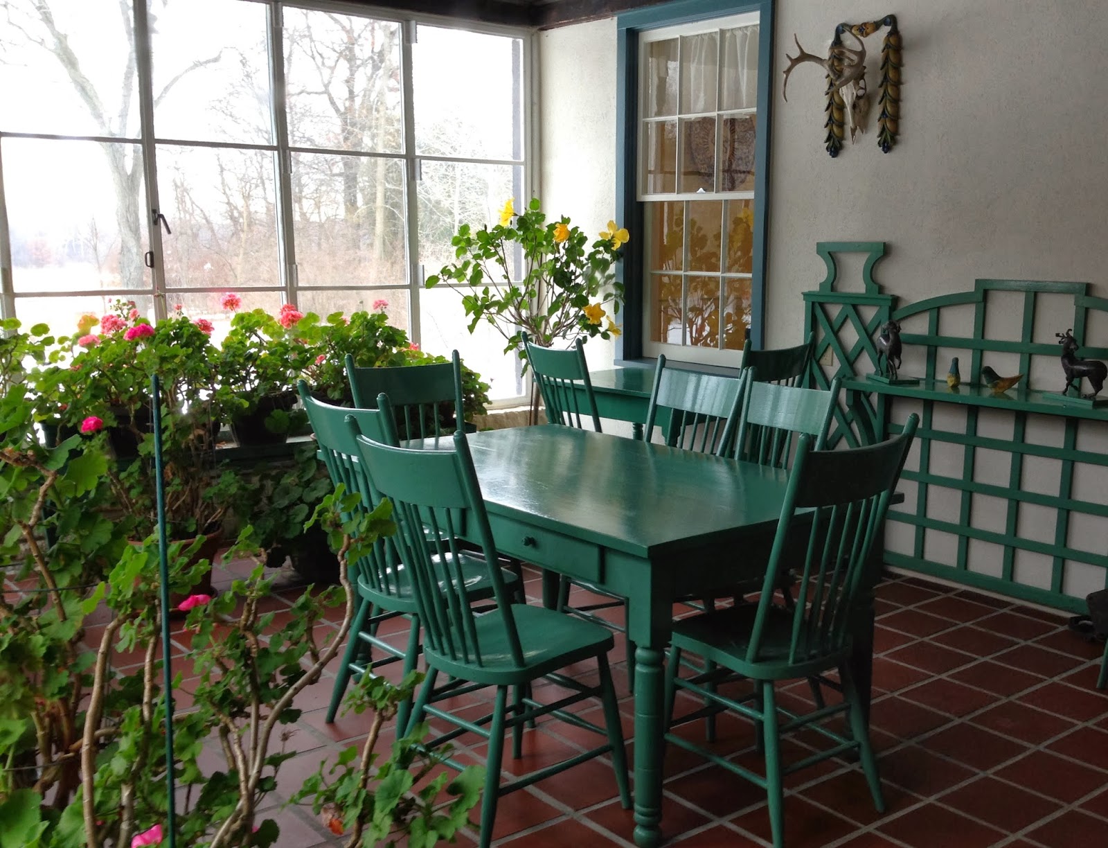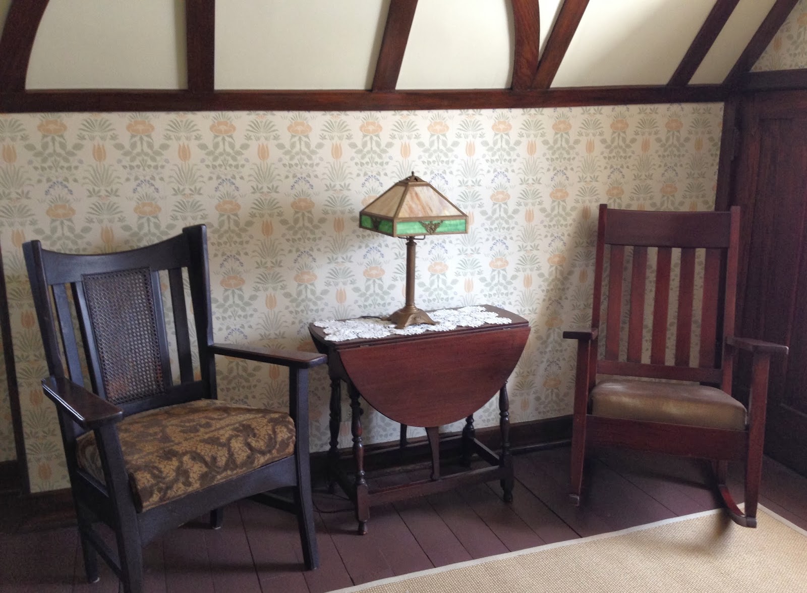 I have this thing about houses. House angst, really, resulting from the misguided idea that in the perfect house life would always be happy. And the house I have always had in mind is an awfully lot like Ragdale: beautiful inside and out, cozy and spacious at the same time, full of color and light. The thing is, I am always happy at Ragdale: the house itself (my temporary home in Room at the Top of the Stairs, the leggy geraniums blooming on the sun porch, the sunny blue and yellow kitchen), the magical, energetic silence of people at work all around me. Even the wallpaper makes me happy.