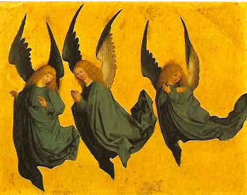The funny thing was, we were disorganized that morning, mixed up about what the kids had and hadn't already done. Turned out, at least some of them had done everything we had in mind to do with them. On the spur of the moment, I'd grabbed a bunch of art postcards and taken them with me--just in case. So we handed them out to the kids in a random manner and put them to work. Here's some writing that came from the exercise, my favorite being "Hovering Angels" by Janai. She wrote this on her own, with no help from anyone. It makes the hair on my neck stand up.