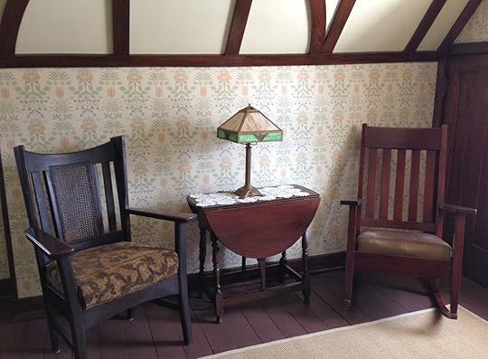 The thing is, I am always happy at Ragdale: the house itself (my temporary home in Room at the Top of the Stairs, the leggy geraniums blooming on the sun porch, the sunny blue and yellow kitchen), the magical, energetic silence of people at work all around me. Even the wallpaper makes me happy.