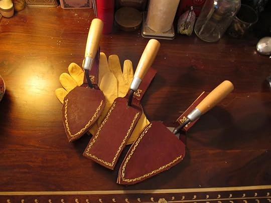 Trowel sheaths! I figured that, while I’m searching for an archaeological society in my location, I may as well be working on a way to carry my trowels in style. I’d had them rolled up in a crummy towel for quite a while, which was starting to become unacceptable. The sheaths aren’t quite finished – they’re rough around the edges and will require the application of a good belt sander and buffer, and I’m planning to stamp (or burn, to avoid having to dismantle them) my initials into each.