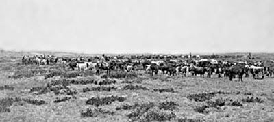 Cattle after they reach Wyoming, 1880s.