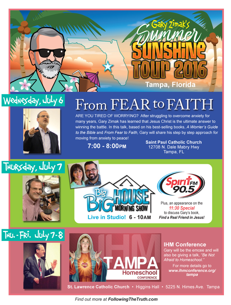 Finally, if you’re wondering about how this will affect my work as a full time Catholic evangelist, the answer is that nothing will change. I will still be traveling around the country giving talks and leading parish missions. I will still host The Gary Zimak Show on BlogTalkRadio and continue to do my various Catholic TV and Radio interviews. And my next book, Stop Worrying And Start Living! will be released in the Fall. Spirit In The Morning is just another way for me to spread the Good News.