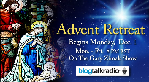 Beginning on December 1 at 8 PM Eastern on The Gary Zimak Show on BlogTalkRadio, I will be leading an Advent Radio Retreat. Every Monday-Friday for 30 minutes, we’ll look at Scripture and discuss ways to better prepare to welcome the Savior more deeply into our lives. In addition to Biblical readings, I’ll be using some rare material from out of print books all designed to bring you and Christ closer together. Simply put, there is no other Catholic radio show that will present a retreat like this. Best of all, there is no cost, you don’t have to purchase any books and you won’t even have to leave your home!