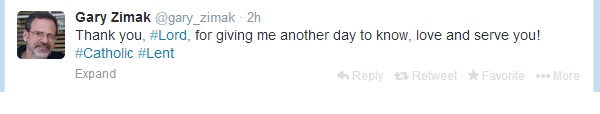 Last night we set our clocks ahead one hour. This morning I woke up tired and, to be honest, feeling a little miserable. As I sat down to eat breakfast with my family before Mass, however, something popped into my head. The fact that I was alive means that the Lord gave me another day to know, love and serve Him. Although I didn’t feel like it, I grabbed my phone, opened my Twitter app and tweeted the following: