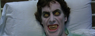 On the other hand, An American Werewolf in London, is a brilliant film. Note there's no qualifier there. It's not a brilliant werewolf movie, it's simply a fantastic movie. Full-stop. Tracking the same dramatic ground as the original Wolfman movie, American Werewolf follows an innocent bitten by a monster and slowly coming to realize that he's cursed. What makes this movie stand out is its clever interplay between humour and horror. Laughs are often used to punctuate the horror and build to the next scare but here, it's used to ground and reveal the protagonist David Kessler, played by David Naughton. The humour endears the character to the viewer and that in turn underscores the horror visited upon him. After a few hilarious/creepy visits from his undead friend Jack, David learns the true nature of the curse he's under. Hooked on the horns of a lycanthropic dilemma, David must choose between killing himself to end the curse or continue to not only kill but condemn innocent souls to purgatory. The story directly references the original Wolf Man movie, taking a cue from that old monster movie which informs the climax to David's werewolf dilemma.