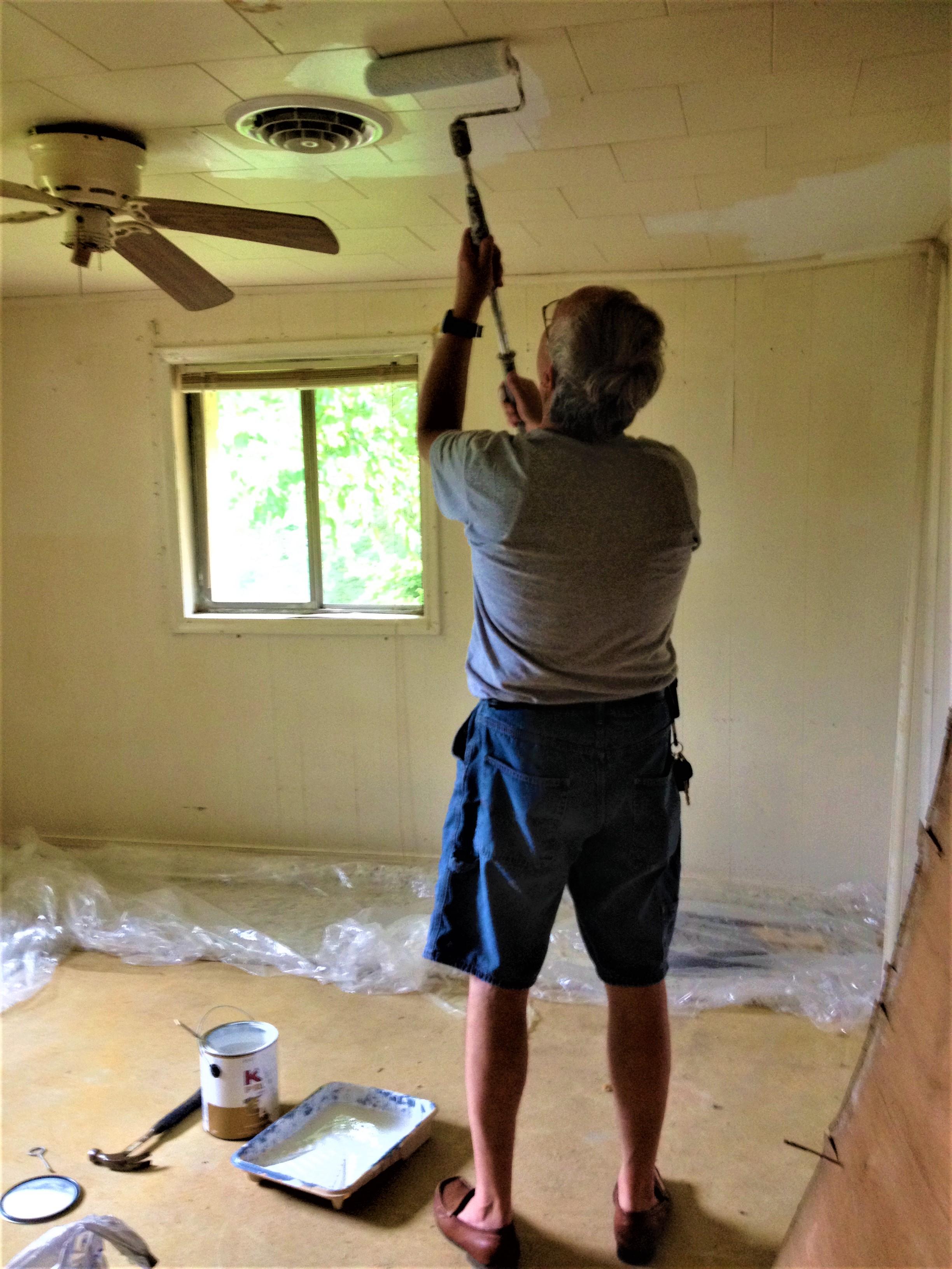 The current resident kept it very dark. Blankets over windows, few lights, low ceilings. The house reeked with the smell of cigarettes and dog urine. The walls were murky, the tile and carpet were decades old with some rooms only floored with a concrete slab. The original aluminum window frames were filthy and porous. The ceilings were stained with nicotine and other contaminants. The bathroom floor was about to fall into the crawl space. It was oppressive just to step inside.