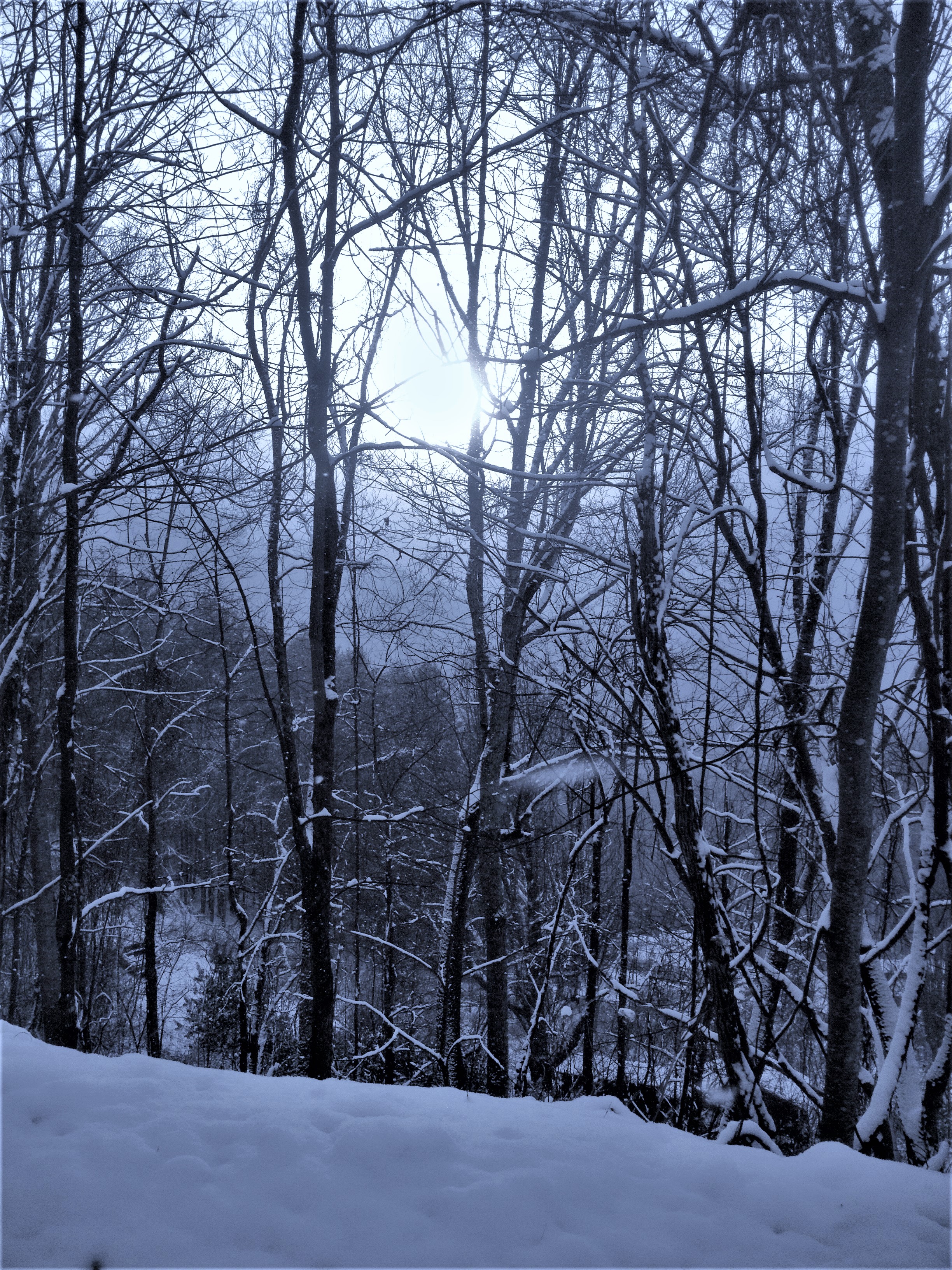 However ironically, I decided to pull out my smart phone as I so often do on hikes, and started snapping photos of the contoured winter path, the covered trees, a mountain stream, and then…