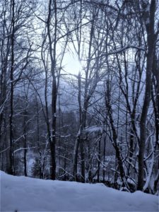 I noticed different tracks in the snow that must have come from a deer—a deer who was probably on the path not long before me. At one point, tracks of two in the snow became tracks of one. Perhaps the deer started to run at the sound of my clumsy approach. So…I wasn’t as alone as I imagined.