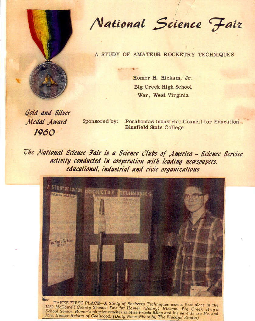 The medal and award which in my memoir and that movie was what all the fuss was about After we got over being sinful in that way, we thought we'd better thank all the people who'd helped us. That's why we set up a last day of rocket launches that I wrote about in Rocket Boys and they memorialized it, sort of different but almost the same, in the movie October Sky. It was kind of a big deal and the day had special meaning to just about everybody who was there, especially me. My dad came that day and, for the first time in forever, I think he was pretty proud I was his son. I know I was proud he was my father.