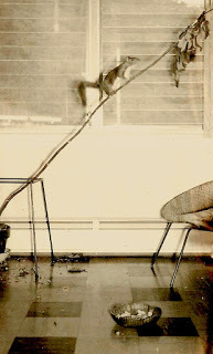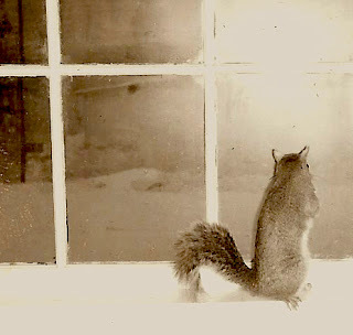 Chipper enjoys a Christmas snack (yes, this is the real Chipper)At his name, the little squirrel squawked and jumped to the top of the couch, ran along it, and leaped for the curtains where it swung, its half-tail jerking spasmodically. "I think he's been living in that tree for awhile," Jim mused.