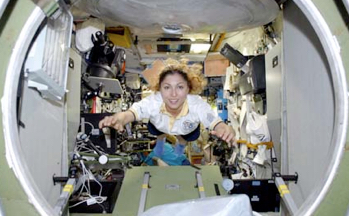 Anousheh flies about the Int'l Space StationVery quickly, Anousheh filled the gray interior of the space station with the bright colors of her personality. Before the bemused eyes of the professional astronauts and cosmonauts on board, she began to fly through the station like a joyful bird. Gradually, their amusement turned into respect. After all, she held more patents than anyone on board, had built a successful business based on her engineering expertise, and had funded the X-Prize!