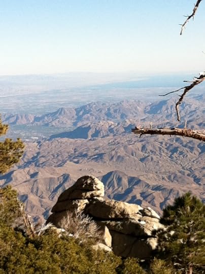 Tuesday, after taking in a morning lecture breaking down Woodrell's first chapter of WINTER'S BONE, Mark let me borrow his car (the fool!), and after joy riding and jumping sand dunes, I parked at the base of Mount San Jacinto (which was only 10 minutes away from the hotel) and took a tram up it's 8000 feet. Amazing. There were 3 inches of snow at the top, and apparently (no one told me before I decided to take a 2 mile hike on one of the mountain paths by myself) hungry mountain lions lying in wait. Pics: