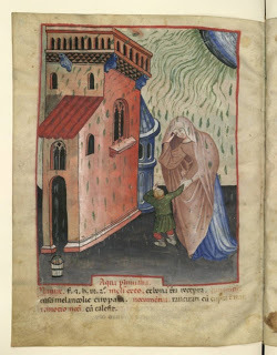 Perhaps one of the most useful images depicting the way boys' clothing changed over time is the 1470s Seven Ages of Man (below), where we see a baby swaddled and bound, then the infants of the next three stages are dressed in a similar loose garment, before the jerkin becomes shorter and accompanied by hose, in the figure on the right.