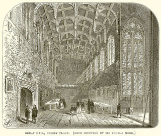 Shortly before he became King, Richard would acquire one of these houses himself; one of the grandest and newest of them all. Some time between 1475 and 1483, he rented Crosby Place in Bishopsgate, which was described by Elizabethan antiquarian, John Stow, as a “great house of stone and timber,” with rear gardens, courtyard, great chamber, chapel, solar, great hall with marble floors, carved ceiling, minstrels’ gallery and an oriel window. According to Thomas More, it was here that Richard would hold informal council meetings during the tempestuous summer of 1483 and where, with Buckingham, he would plan his coup. When Shakespeare included references to Richard’s ownership of Crosby Place during the funeral procession of Henry VI, he was out by at least five years!