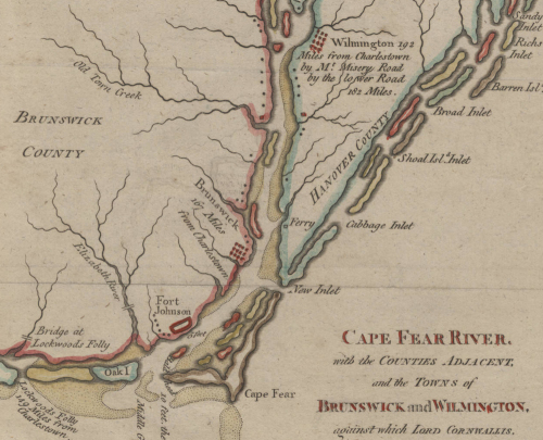 In the Cape Fear area near Wilmington, North Carolina, superior knowledge of the coastal an inland waterways enabled the rebels to prevent reinforcements by sea and kept the critical state in American hands from February, 1777 until a second invasion force of British troops arrived in 1780. Then began a prolonged guerrilla type war along the treacherous Cape Fear River. British warships patrolled, while blockade runners attempted to smuggle in valuable supplies. Both sides depended on local knowledge of the waterways to achieve success.