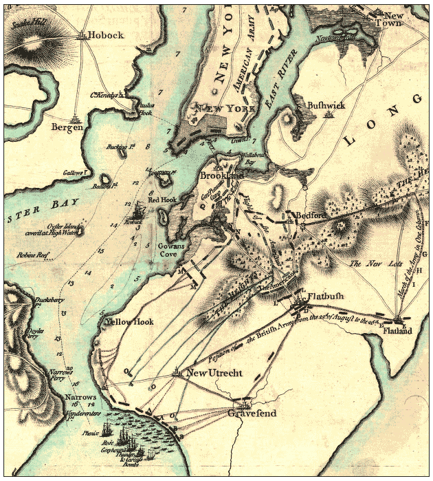 The Flatbush Pass was the key terrain in the outer defenses on Long Island. Most of his troops were frantically digging a series of earth works and small redoubts from Wallabout Bay to the Gowanus Creek in an effort to shield the village of Brooklyn and the ferry point below the famed heights of that name. Recognizing British superiority in numbers and equipment, General George Washington counted on a Breed's Hill style defense that would bloody the British the way the rebel army did the previous year outside of Boston. Yet the advantages of holding the British at the "great Moraine" was too tantalizing. The moraine, known then as the Heights of Guan, was the southern extremity of the glacier from the last great ice age. When the glacier receded it left a slash of rugged terrain across the normally flat lands of Long Island that ran from southwest to northeast. Although it was only some 100 feet above sea level, the Heights of Guan formed a formidable barrier mitigated only by three passes. The central of these was the Flatbush Pass.