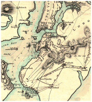 When the British drove the Continental Army from New York City in 1776, the knowledge and understanding of the waterways and islands became essential to British. Although they found no lack of of sympathizers with knowledge of the waters, the Americans had their share. And the farther the British fared from the "safe zone" of New York Island (Manhattan) and Long Island, the more tenuous the situation. Thwarting an attempt at naval envelopment in 1776, the rough shoreline and waters of the Bronx forced General Howe to try landing further north near Pelham. This gave the Americans time to shift forces to protect the Continental Army and his line of communication.