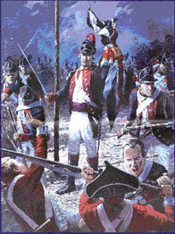 with cold steelThe forlorn hope moved out around midnight 15-16 July. It was a moonless night and they reached the British defenses undetected. Wayne, taking a lesson from his humiliating defeat at Paoli, had the men in his columns remove their flints and advance with fixed bayonets. One of the columns, a diversion under Major Hardee Murfee attacked the British center and drew away several companies of Lieutenant Colonel Henry Johnson's 17th Regiment. Murfee's men did have flints and powder as their mission was to get the attention of the defenders. With the diversion underway, Wayne's column and the second column under Colonel Richard Butler scaled the heights and overran the defenses. Despite their surprise, the 600 or so British defenders performed their duty as professionals and resisted bitterly.The fighting was hand to hand and vicious. But after 30 minutes, the fort fell. The British lost 63 killed, 70 wounded and the remaining 543 captured, along with twelve guns. The American attackers lost 15 killed and 83 wounded. Wayne received a head wound early in the attack, but continued to lead his forces. Earlier, the fiery Wayne had offered a bounty to the first man to enter the enemy works. The recipient of the award was an officer named Francois LouisTeissedre de Fleury, who had come to America from France and had served gallantly in previous battles, rising to captain of engineers. The "Little Gibraltar" on the Hudson had succumbed to Yankee stealth, audacity and courage - with some Gallic help.
