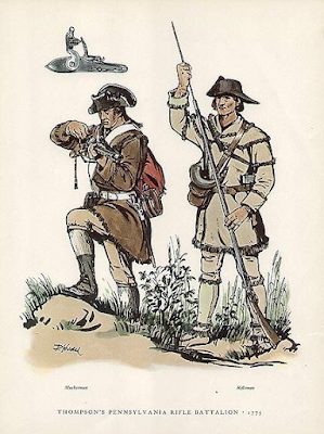 On October 7, 1777, one rifleman, Timothy Murphy (See Blog, Patriot Sniper), fired three lead balls at General Simon Fraser (see Blog, Fighting Fraser)), with two striking and mortally wounding the best British leader on the field. Fraser's death demoralized the British, and Burgoyne later surrendered at Saratoga, New York, when Morgan's Rifles and American militia cut off his supply lines and threatened his line of retreat.