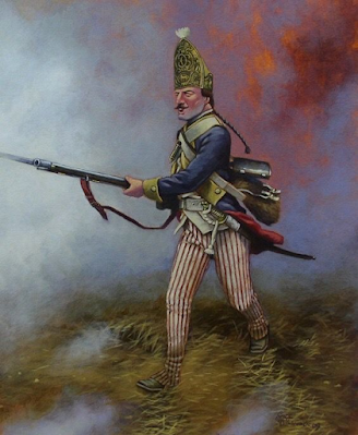 From Friction to FightingBut the political friction following the war would sizzle into armed resistance, and Haslet was drawn into it, later becoming a proponent for independence from Britain. The Continental Congress appointed him a Colonel and commander of the Delaware Regiment (sometimes called the Delaware Blues), one of the largest (800 men) and the best uniformed and equipped regiment of the Continental Army. Their blue jackets with white waistcoats and breeches set the standard for all the Continental Line regiments.