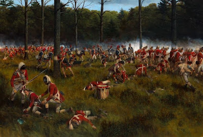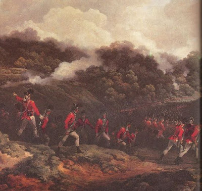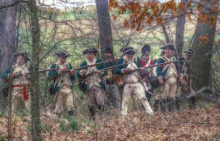 There, Fraser’s elite force ran head-on against their American counterpart, the corps of Virginia and Pennsylvania riflemen under Colonel Daniel Morgan. Morgan’s riflemen sported long rifles with grooved barrels enabling accurate fire well over one hundred yards. Fraser's brigade included the tip marksmen in the British Army. The lead flew as the best of both armies peppered each other and finally, Morgan’s force was driven back, leaving an opportunity to exploit the situation and fight their way around the American flank.