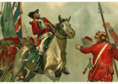 The Scots, like their cousins across the Irish Sea, tend to fight for the English when not actually fighting against them. This the young Fraser did, but beginning with a stint in one of the Scots Brigades in the hire of the Netherlands - the 4th Brigade to be precise. In the waning years of the War of Austrian Succession young Simon fought at the 1747 siege of Bergen-op-Zoom. The attacking French swarmed over the defense works and streamed into the town where savage fighting took place. In the attack and counterattack, Fraser was wounded.