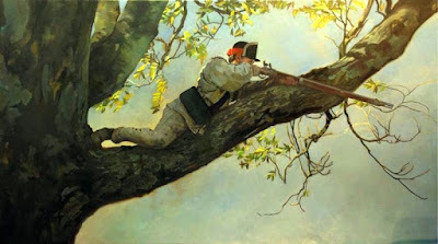 From somewhere far off, an American rifleman cocked his hammer and gazed down the long barrel of his rifle, leveling it on a red-coated figure on a horse. Legend has it the sniper was Private Tim Murphy who allegedly said, “That is a gallant officer, but he must die.” He squeezed the trigger, the hammer cracked down, ignited the firing pan, and launched a ball that just missed Fraser. A second shot struck his saddle but Fraser ignored the fire. Ignoring pleas from his aides, he continued until a third shot struck home with a ball into his belly – a mortal wound.