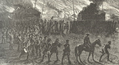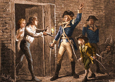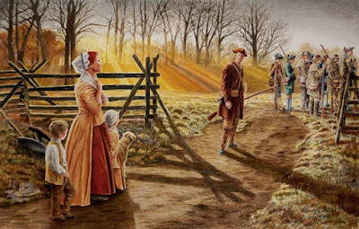 Glaring at them with a Brown Bess at full cock, she ordered them not to move. Refusing to be taken by a woman (and under the influence), one Loyalist made a move on her. That's all it took. Nancy squeezed the trigger, and the hammer slammed into the pan, striking the powder and sending a plug of lead into his chest. Another Loyalist lunged at her, but Nancy had grabbed another musket and blasted him. She had little trouble convincing the remainder to sit quietly at the table until help arrived. When her neighbors and husband appeared, they decided to shoot the prisoners. But Nancy refused. Instead, she demanded they be hung from a nearby tree.