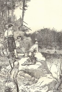 But the Loyalists made one big mistake. They neatly stacked their muskets near the door when they entered the cabin to sit at the dinner table. Nancy went to work with the table set and the food going down in mouthfuls. She slipped some of the muskets through a hole in the cabin wall. Nancy kept the food and drink coming, and once the men were sufficiently lubricated, she seized one of the muskets she left in the cabin and leveled the barrel on her visitors.