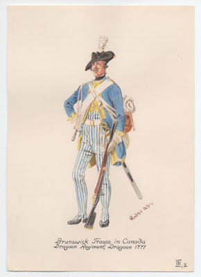 Friedrich Baum was commander of a rare commodity in North America, a cavalry regiment. In this case, the Dragoon Regiment Prinz Ludwig, better known as the Brunswick Dragoons. The regiment's name came from its benefactor (the person who raised and equipped it), Prinz Ludwig Ernst, younger brother of Duke Karl, ruler of Brunswick. The Prinz Ludwig regiment was one of seven hired by the King of England from the Duke of Brunswick. The others were infantry: four musketeers, one grenadier, and one jaeger regiment. The Duchy of Brunswick (Braunschweig) is a north German principality that provided a crack professional army to allies like Prussia or friends with hard cash, like Britain.