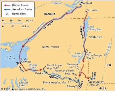 During the summer 1777 campaign led by Brtish General John Burgoyne, Ticonderoga was in the cross hairs. The massive fort was the key to Burgoyne's success as it would provide his logistics base and jump-off point for his final thrust to Albany and a link-up with General Henry Clinton's army in New York City.