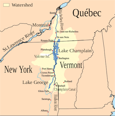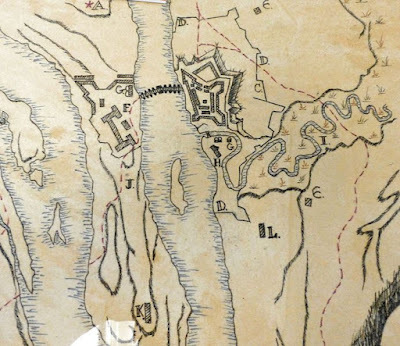 Fort Ti is the big daddy of forts, the big kahuna, The Gibraltar of the North, and figures largely in my novel, The North Spy. The name "Ticonderoga" comes from the Iroquois word tekontaró:ken, meaning "it is at the junction of two waterways" Situated between lakes Champlain and Lake George, the site dominated the transit route between Canada and the American colonies, making it a strategic a place as any in North America. I visited once when I was very young and twice as an adult and have not begun to scratch the surface of its historical and geographic significance.