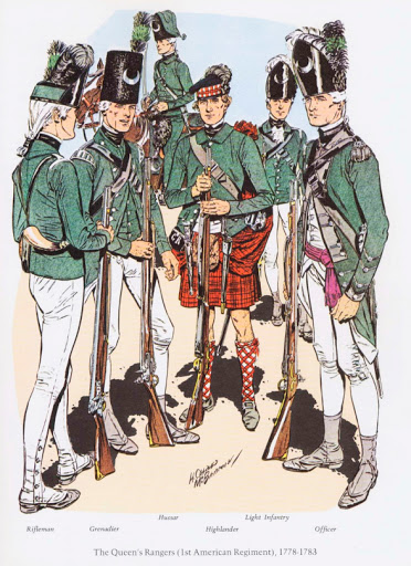 He must have impressed his commander In chief, Lieutenant General William Howe, who promoted him to major in October and gave him command of the Queen’s Rangers. The Rangers were once a storied unit formed by the even more storied hero of the French and Indian War, Major Robert Rogers. The unit’s star had faded along with that of Rogers, who had left the army. Simcoe went right to work drilling it in the unorthodox tactics he knew the American war demanded. Outfitted in green uniforms and tirelessly drilled to fight as skirmishers in deep woods, patrol dense forests, and conduct raids and ambushes, they would eventually strike fear in all they faced. He eventually raised the unit to around 11 companies of some 30 men each. One was a “hussar” (light cavalry) company. He also added a light infantry and a grenadier company.
