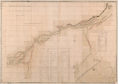 Montresor remained in North America after the Treaty of Paris ended the war in 1763. A rugged new world needed to be mapped and infratstucture of all types need planning and construction - especially forts to protect the newly aquired empire. What better place for an engineer? He stayed with the occupying army, serving newly appointed governor, General James Murray in a series of mapping expeditions of the newly conquered territory. Probably the most important of these was supporting Murray's mapping of the St. Lawrence River. But Montresor was also engaged in constructing forts in the new dominion. Montresor's French language skills also saw him in a pacification role, disarming local militias and ensuring the loyalty of the king’s new subjects.He also found time to explore the wilderness between Quebec and the Kennebec River (Maine). Ironically, his written record would be used by Colonel Benedict Arnold in his campaign against Canada in 1775.