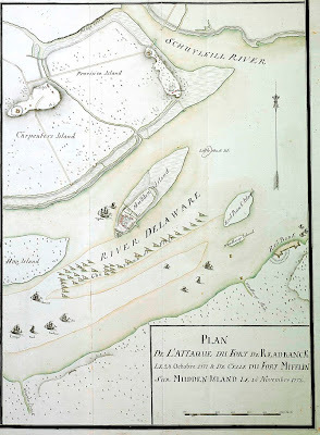He gave up his post as chief engineer and served as General William Howe’s aide de camp for a time, but Montressor was later reinstated as chief engineer. When the campaign for Philadelphia was launched in 1777, he was in the thick of operations. He fought during the forage war in New Jersey. He also served at the battle of Brandywine later that year, and accompanied the army to Philadelphia where he rebuilt the garrison's fortifications and later launched the savage series of attacks that destroyed his former Mud Island defenses, which ironically included Fort Mifflin, the fort that once bore his name.