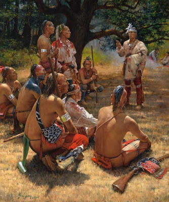 The Native American tribes played an interesting role in the American War for Independence. In some ways, the friction caused by the westward push of European settlers contributed to the friction between the colonists and the British authorities in London, who viewed the Indian Territory west of the Alleghanies as a buffer against Spain. Americans settling the west posed a risk as possible future allies of Spain or a potential cause of war with Spain. The tribes were caught in the middle, especially in the Carolinas and western New York.