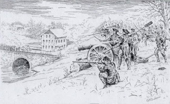 On 3 January 1777, Mercer, leading the advance corps ahead of the main body, ran into a brigade of some 1200 British regulars under Lieutenant Colonel Charles Mawhood of the 17th regiment of Foot. A bloody exchange of volleys erupted in the vicinity of Stony Brook Bridge. Rather than retreat under the press of the redcoats, the imposing Scot plunged into battle against the better trained British. But his troops were forced back after stiff fighting.