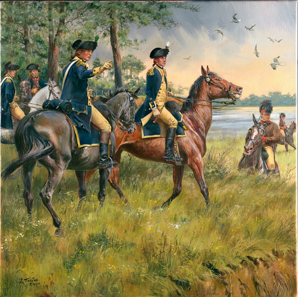In May of 1778 he was tested as the New Jersey militia commander when his men fended off an attack on Trenton by British forces under Major John Maitland. The clash presaged the British “retrograde” from the occupied American capital. His mettle was soon tested once more. Washington dispatched him and his militia to disrupt and interdict the British column when the British commander, Sir Henry Clinton, ordered a retreat from Philadelphia. The bulk of the British Army had to march across the Jerseys to reach the safety of the highlands and the transports back to New York. Dickinson’s 800 men stayed ahead of the advancing column, felling trees and destroying bridges to slow its movement for Washington to attack it from the rear at the battle of Monmouth on 28 June.