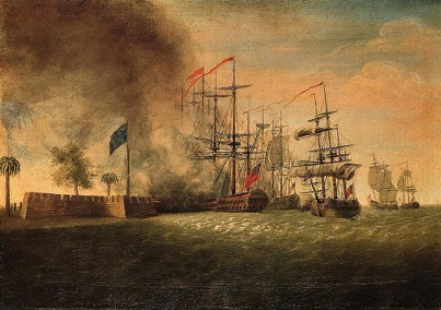 The 1763 Treaty of Paris consigned Parker and most of his fellow officers on to half-pay. This half pay status was intended to reduce expenses while keeping experienced officers in hand so they could be reactivated for the next war. And in the 18th century Royal Navy, there always was a next war. Parker remained without a command for nearly a decade. But then things got interesting. Knighted in 1772, Sir Peter Parker was given command of the second-rate but heavily armed (90-gun) HMS Barfleur when he rejoined the service in 1773. By 1773 things were heating up in the North America colonies. In 1775 Parker was given command of the fourth rate 50-gun HMS Bristol but more importantly, he would soon receive command of a squadron and promoted to commodore.