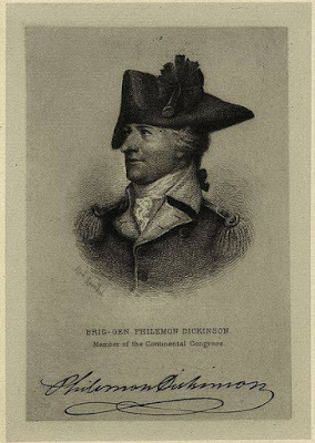 Philemon Dickinson was born at "Crosiadore”, in Talbot County, Maryland on 5 April 1739. The son of a local judge, Philemon was also the younger brother of fellow first-patriot and signer John Dickinson. Following his graduation from the College of Pennsylvania (now the University of Pennsylvania) in 1759 the younger Dickinson clerked briefly at his brother John’s law office. But Dickinson abandoned the profession shortly after and began to manage their father’s estates. In 1767 he married, Mary Cadwalader, member of one of the area's most prominent families. The couple moved to a farm just outside Trenton, New Jersey.