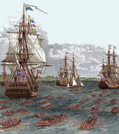 The eight-year War of the Austrian Succession would provide plenty of action for the Royal Navy and lots of opportunities for up and coming young officers like young Peter. Parker received his lieutenant’s commission in the summer of 1743 aboard the HMS Russell, a second rate 80-gun ship of the line. He served on several warships at various stations. Most notably the Mediterranean, where he took part in the battle of Toulon on 11 February 1744 aboard the flagship of Rear-Admiral William Rowley, the 90-gun HMS Barfleur.