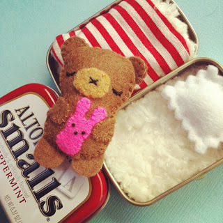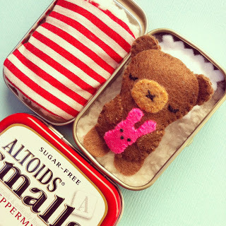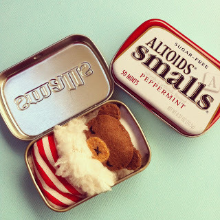 There are some incredibly cute tutorials for making little toys that fit in tins...but this pattern, besides being free, produces some awfully cute toys that fit perfectly in the tiny tins...