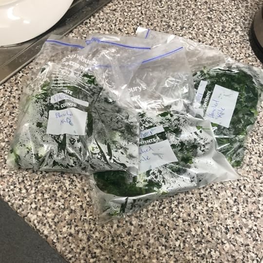And below we have the kale in freezer bags (they look a bit icy because I put them in the freezer before I felt inspired to write this post!). I like to put about two portions worth in a single bag. I produced more bags than are pictured, the rest are in the freezer…
