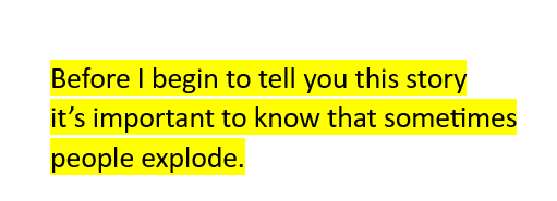 I also think it may have the best first line I’ve ever written. Possibly that’s ever been written.