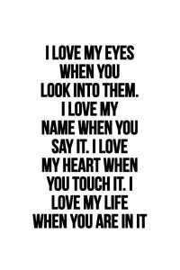 dodinsky – I love my eyes when you look into them. I love my name when you say itu. I love my heart when you touch it. I love my life when you are in it.