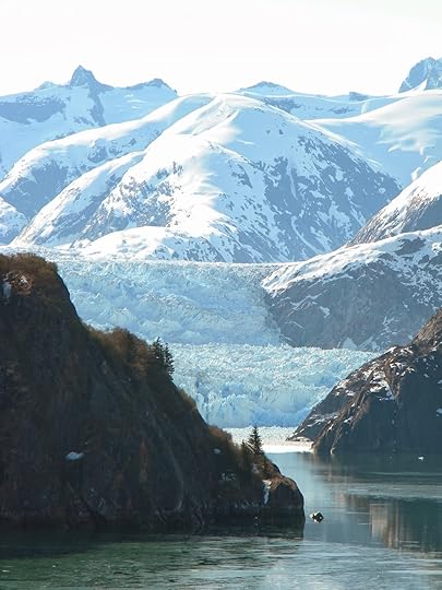 Sawyer Glacier, also featured in MountainsRaleigh Harmon enjoyed her Alaska adventure so much she's begged to return for more far-north geology--and juicy crime. I'm seriously considering it. In the meantime, here she is on the cruise ship's upper deck, in the opening of The Mountains Bow Down: