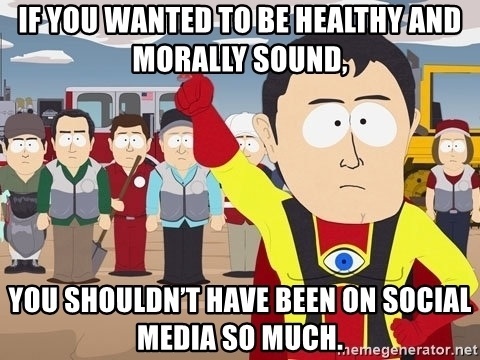 To sum everything up, I’ve made a new Captain Hindsight quote to close off this blog post. “If you wanted to be healthy and morally sound, you shouldn’t have been on social media so much.”