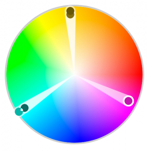 The triad colour scheme is like the complementary scheme except it adds a third value. Each value is equally distributed across the colour wheel. This colour scheme is more complicated to work with due to the amount of choice you have.